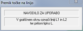 Dokler je to pogovorno okno odprto, lahko premikamo točke na linijo z upoštevanjem izpisanega navodila.