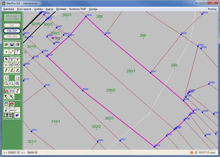 V našem primeru bomo na željo stranke ustvarili novo območje bonitete, ki pokriva njegovi dve parceli. To sta parceli 299/1 in 299/2.