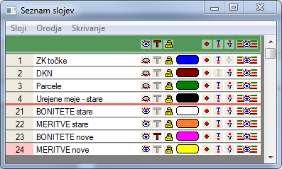 Na slojih od 1 do 4 ležijo podatki zemljiškega katastra. Ti sloji imajo izklopljeno vidnost, saj nas sedaj ne zanimajo več.